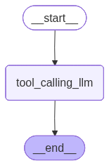 MessagesState是 LangGraph 内置的状态类,只包含messages: list[BaseMessage]。tool_calling_llm节点:接收消息历史,调用 LLM(带工具),返回新消息。- 整个图是 单节点线性流程:输入 → LLM → 输出。